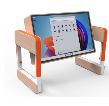 Doet is more than just a piece of furniture—it’s a versatile companion for play and learning. Thanks to the integrated 10-point touchscreen monitor on the side opposite the wooden surface, this desk becomes a true multimedia hub, capable of adapting to a wide variety of educational needs.