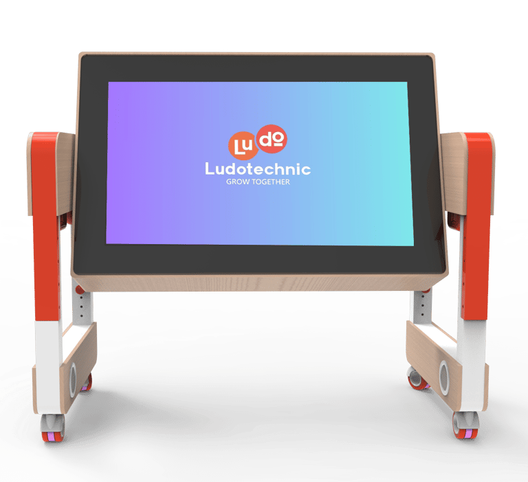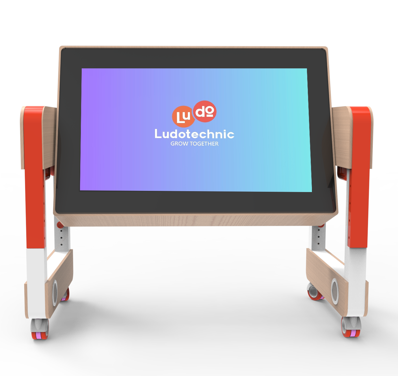 Monitor touch inclinato ed ergonomico per attività digitali educative in coppia o di gruppo.
