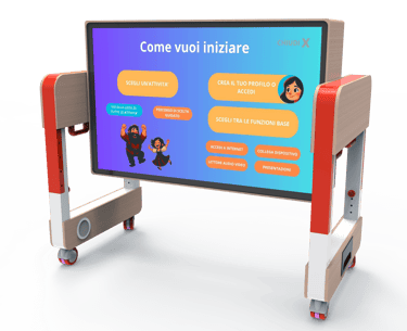 Schermo verticale per proiezioni, musica, balli e momenti speciali da condividere con la classe.