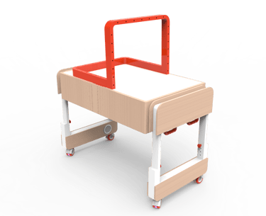 Piano con barriere laterali, per coding e giochi con elementi mobili.