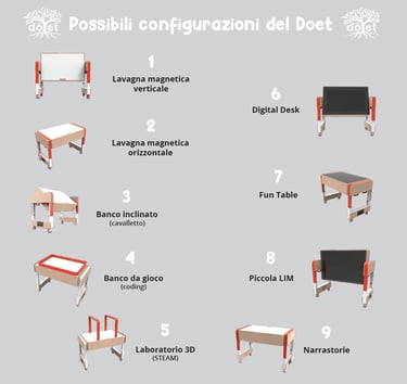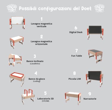 Doet è un banco didattico 2-in-1 per la scuola dell'infanzia e la primaria in ambiente ibrido, analogico e digitale